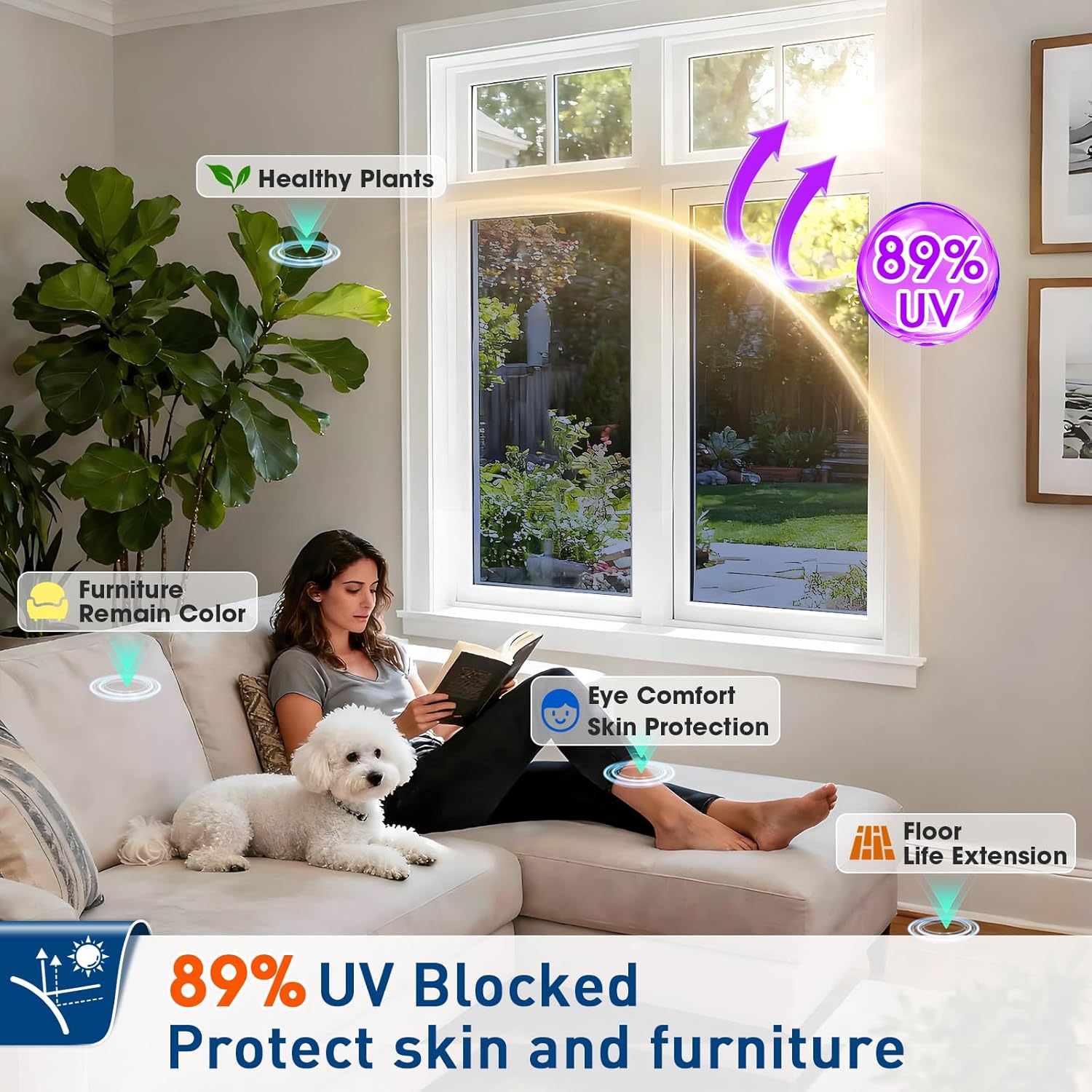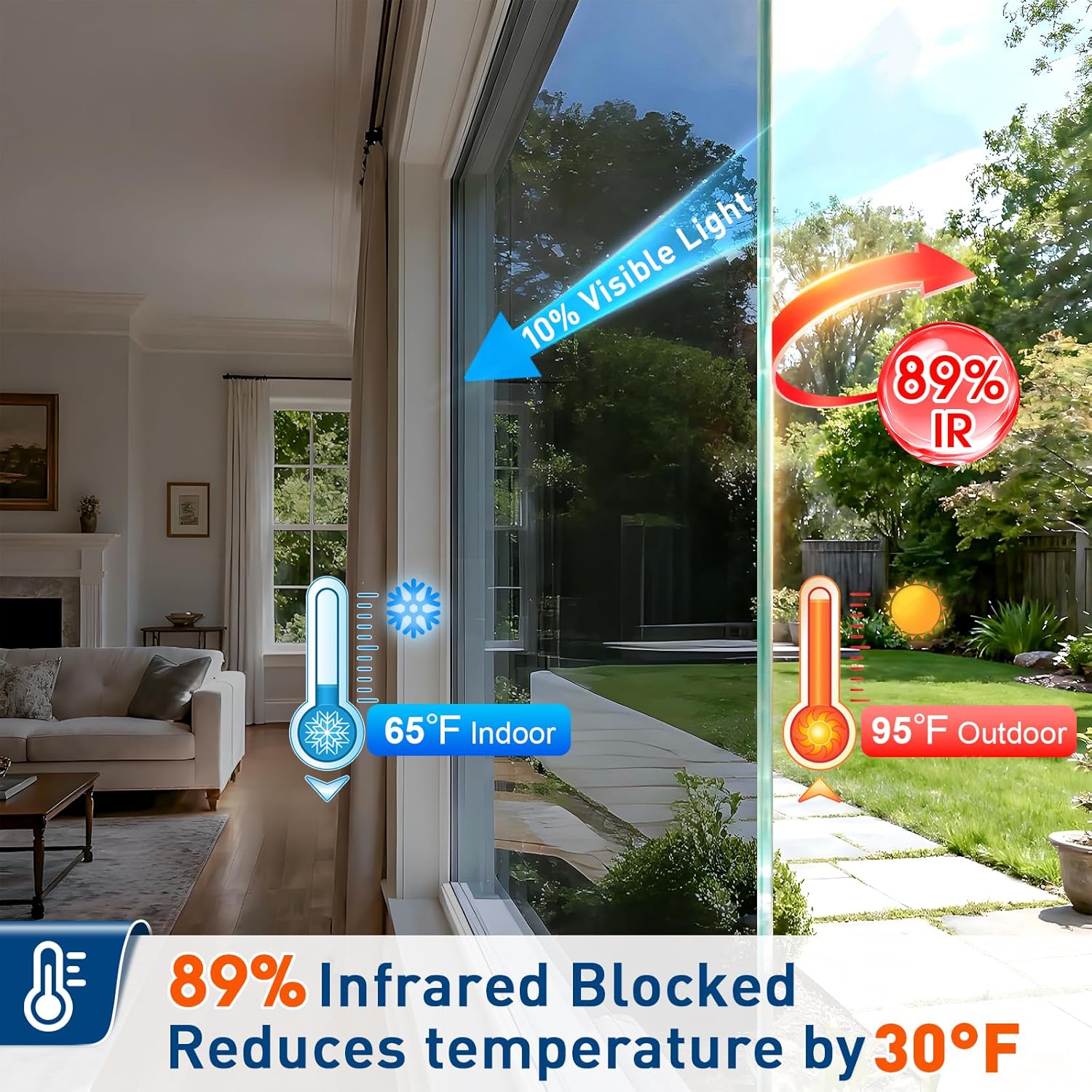 • HEAT CONTROL & ENERGY SAVING: The window tinting film for home reflects some of the heat back outside, thus reducing the amount of heat transmitted through window glass, which can keep cool in summer and retain heat in winter, helping you save money by cutting the high energy bills