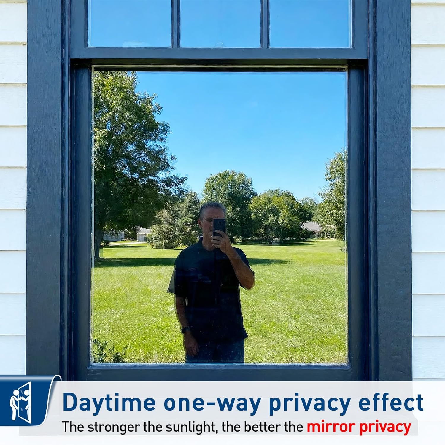 • ONLY DAYTIME PRIVACY PROTECTION: This one way window film provides superb privacy during daytime, the mirror reflection of privacy control window film allows others to not see any interiors from the outside, effectively protecting your private space. But when inside light is stronger than outside, loss of light difference, such as the lights turning on, the mirror effect will disappear and will be seen from the outside. So at night with this mirror tint, it is necessary to draw the curtains