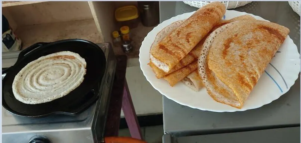 Heavy hai (cast iron) but heat retention next-level. 2–3 uses ke baad natural non-stick feel aa gaya—lace-crisp dosa! 🔥