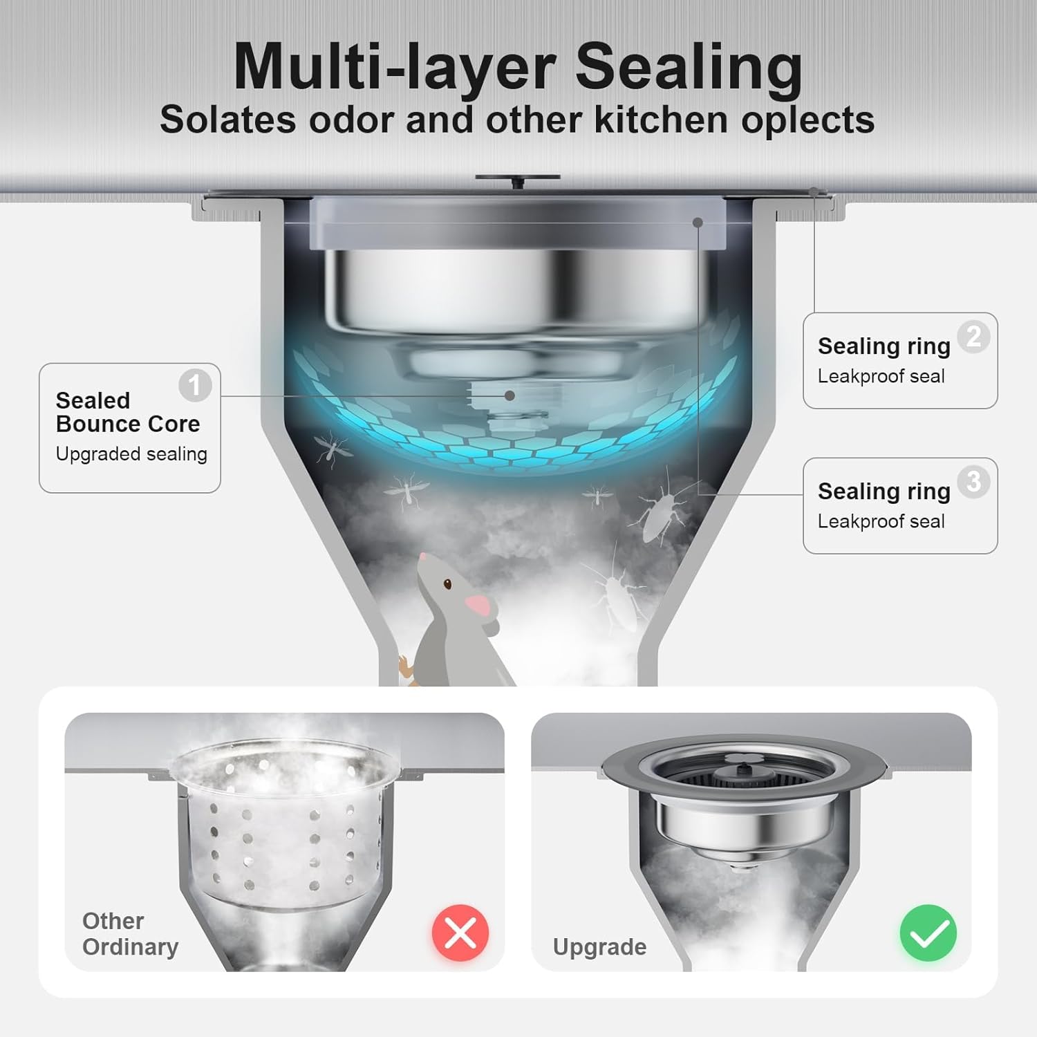 - 【Pop-up Spring Stopper】Sink stopper kitchen drain, just one press you can easily switch between water storage and fast drainage strainer. It is suitable for various places including kitchens, restaurants, hotels, and canteens etc.